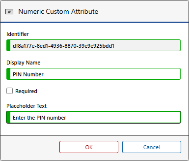 The numeric custom attribute type allows the user to enter a numerical value between 0 and 9223372036854775807.