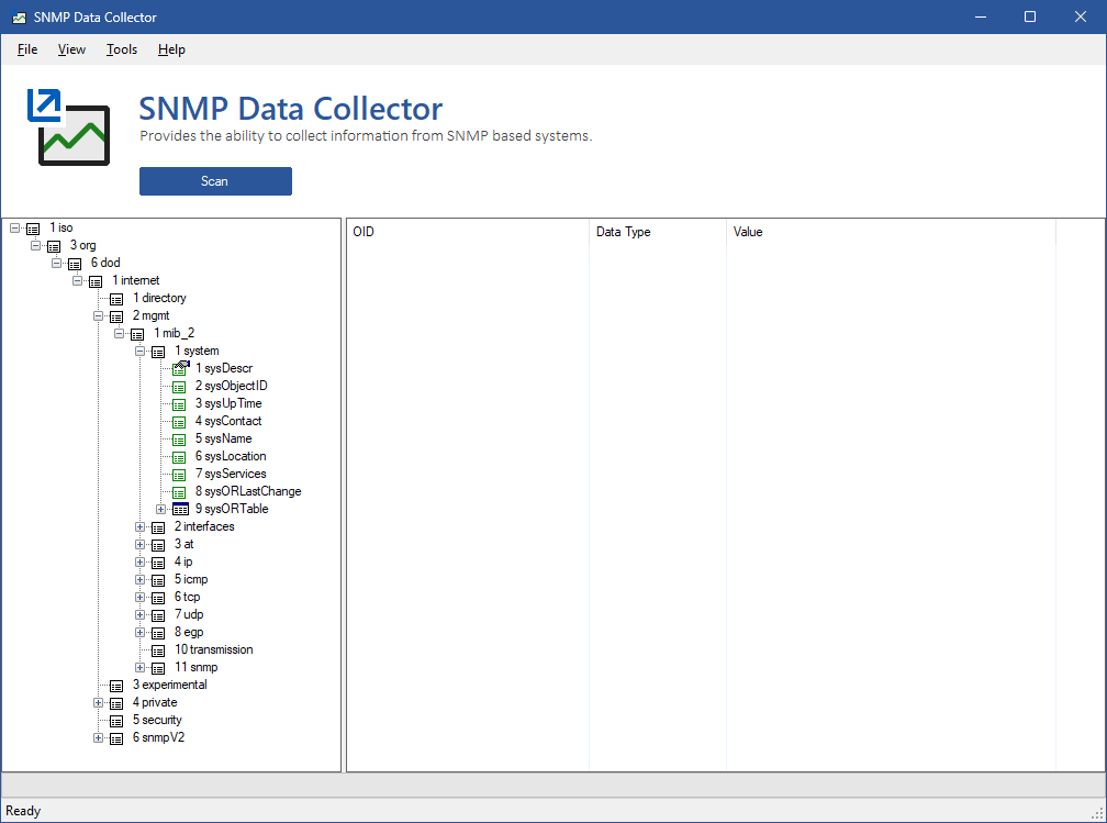 The SNMP Data Collector is a tool that allows the collection and analysis of SNMP data from remote machines. This can be used for diagnostics purposes and to provide information to CENTREL Solutions when adding support for new device types or device manufacturers.