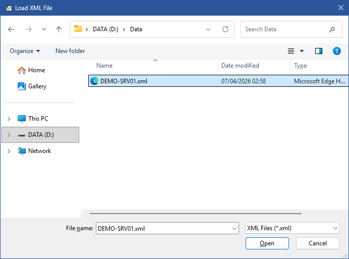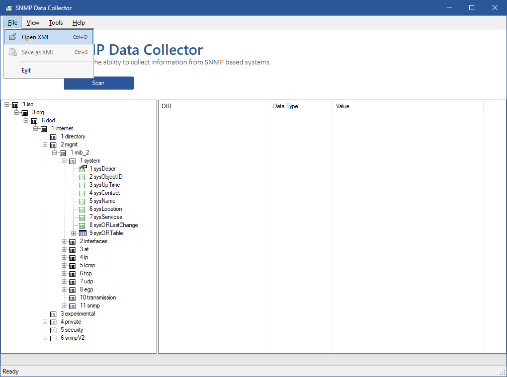 Data from the SNMP Data Collector can be loaded from and saved to XML.