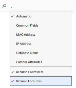 From the Advanced Search Menu, select Recurse Locations to determine whether the system should search for items in child locations.