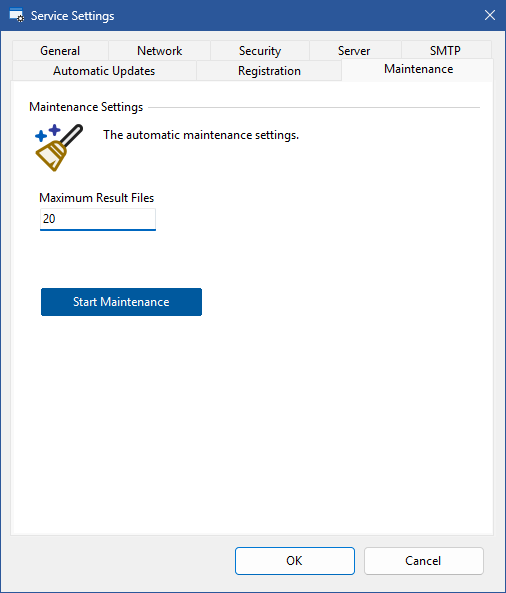 Clicking Start Maintenance will cause the maintenance tasks to run immediately rather than waiting for the scheduled interval.