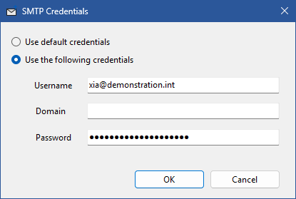 The domain name to use for the connection. If specifying an email address for the username, the domain field can be left blank.