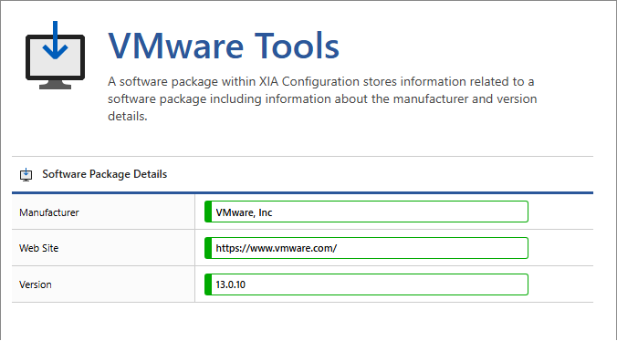 Software package items allow the collation of information about a given software package including manufacturer, web site and version. Software packages can be extended with custom attributes and lifecycle information.
