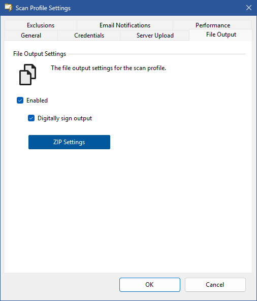 - Modify the scan profile and ensure that the file output settings are enabled.