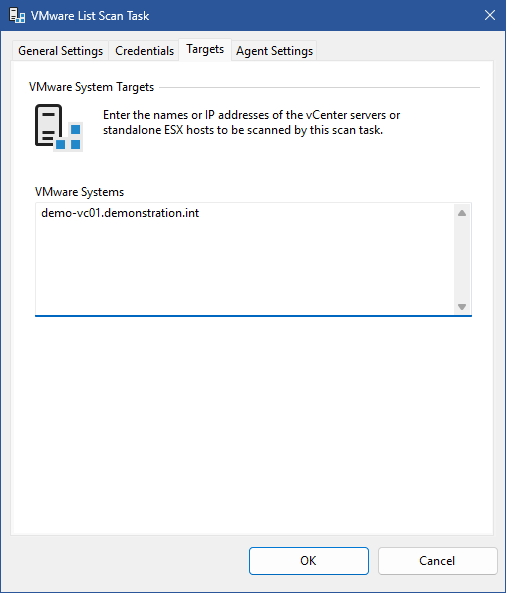 The IP addresses or fully qualified domain names of the VMware systems to scan, one per line.