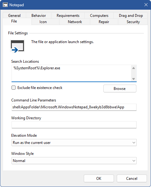 The XIA Links Client makes it easy to create shortcuts to modern applications.