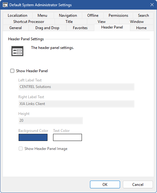 Determines the image to display in the header panel. The maximum image size is 32x32 pixels.