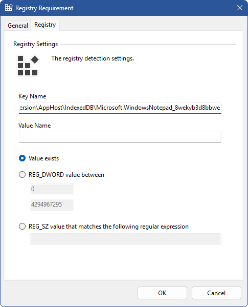 A new registry requirement is created and configured automatically to ensure that the modern application is available on the client machine.