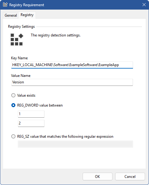 The registry requirement ensures that the registry value is a REG_DWORD (integer) value between the specified values inclusively.