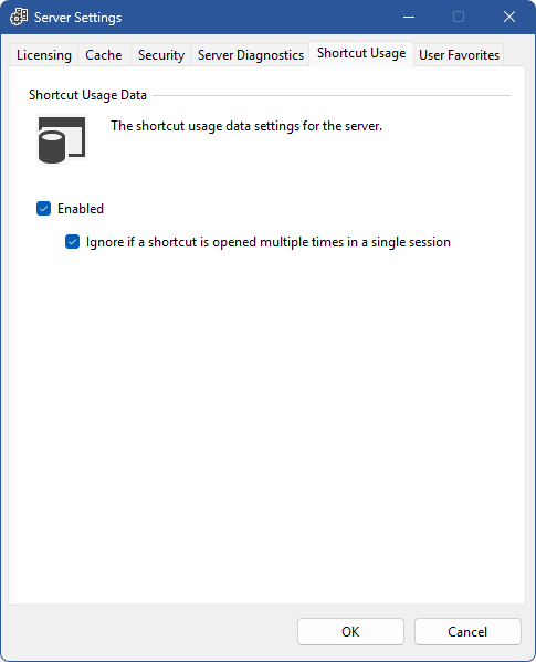 Shortcut usage data provides the ability for system administrators to see how often a shortcut has been opened by users of the server.