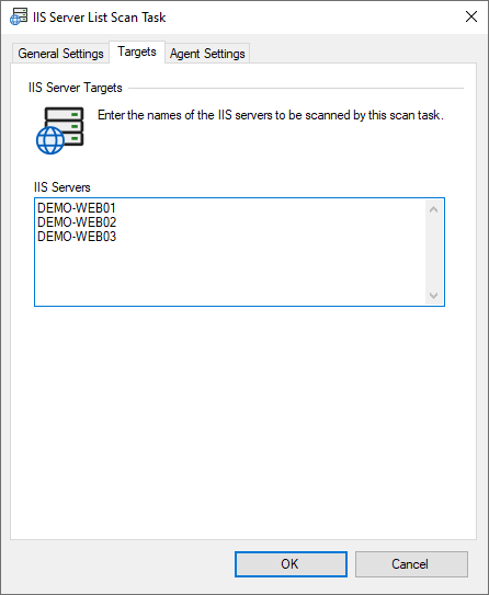 The IP addresses, NetBIOS names, or fully qualified domain names of the IIS servers to scan, one per line.
