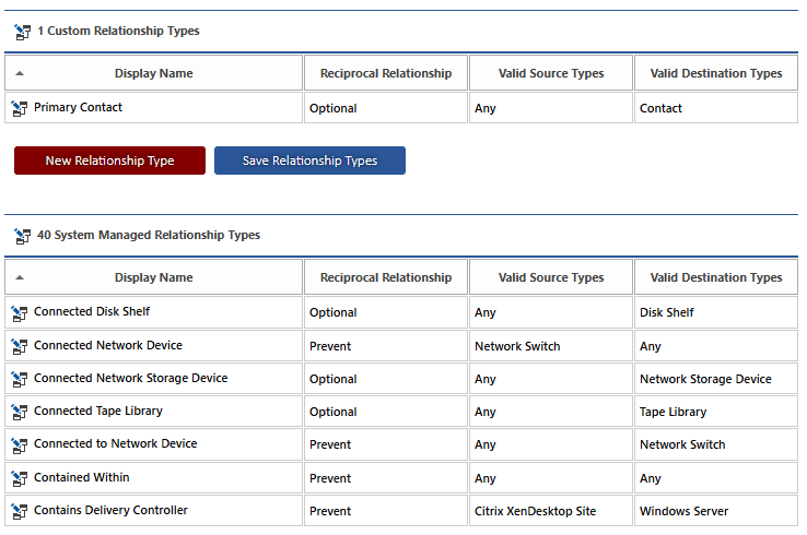 The system automatically manages a number of relationship types between items, however additional relationship types can be defined.