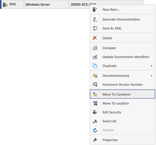 Other items can be assigned to a parent container or customer by right clicking the item, and selecting move to container.