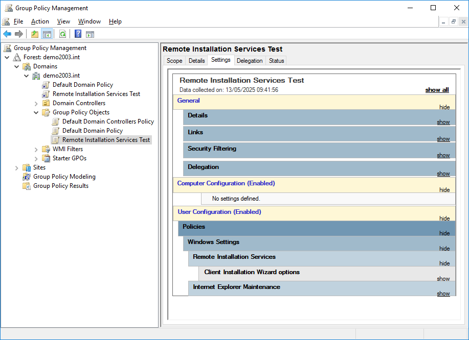 \\%USERDNSDOMAIN%\sysvol\%USERDNSDOMAIN%\policies\{GUID}\User\MICROSOFT - Remove the "RemoteInstall" directory.