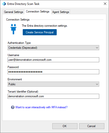 It is recommended to use a service principal with a certificate, or login interactively using multi-factor authentication using the Microsoft 365 agent UI.