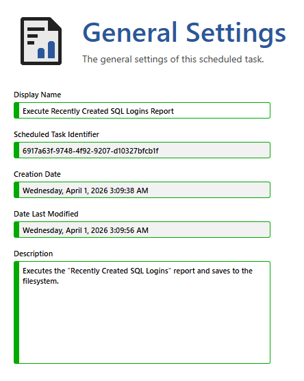 A description of the report execution scheduled task.