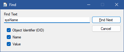 To find data within the SNMP Data Collector's results, select Find from the View menu or press CTRL + F.