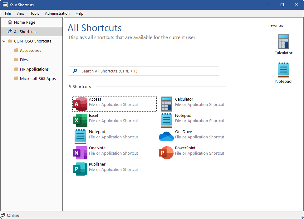 System administrators can configure the name of the all shortcuts section in the localization settings.