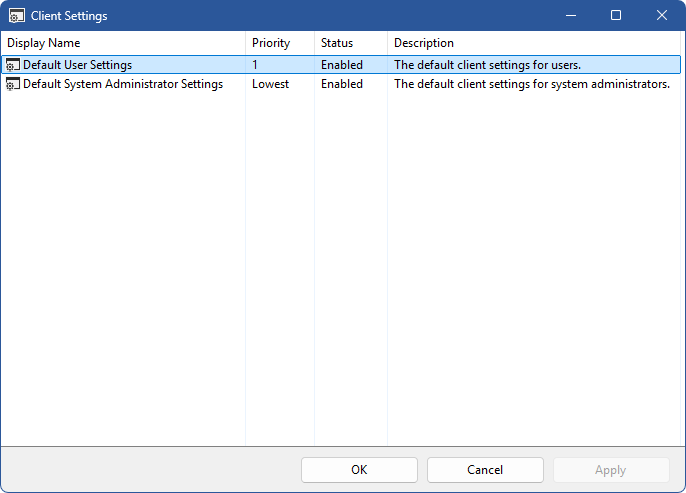 When a user has permissions to use multiple client settings the client settings with the highest priority is applied.
