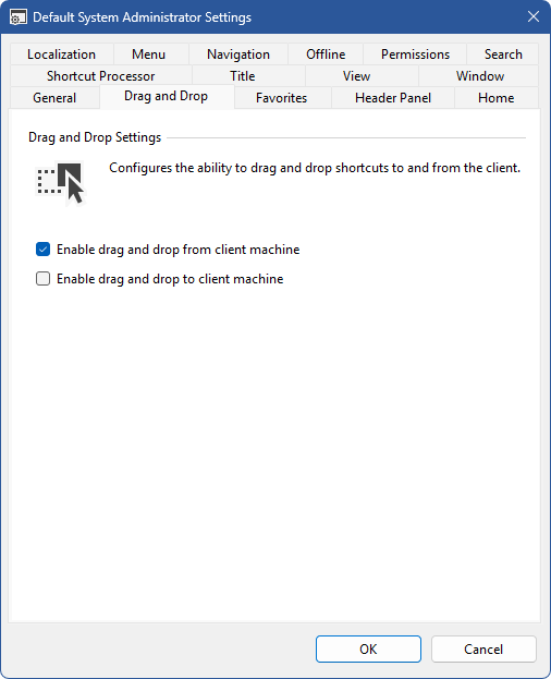 Determines whether users can drag and drop shortcuts from the XIA Links Client to the client machine.