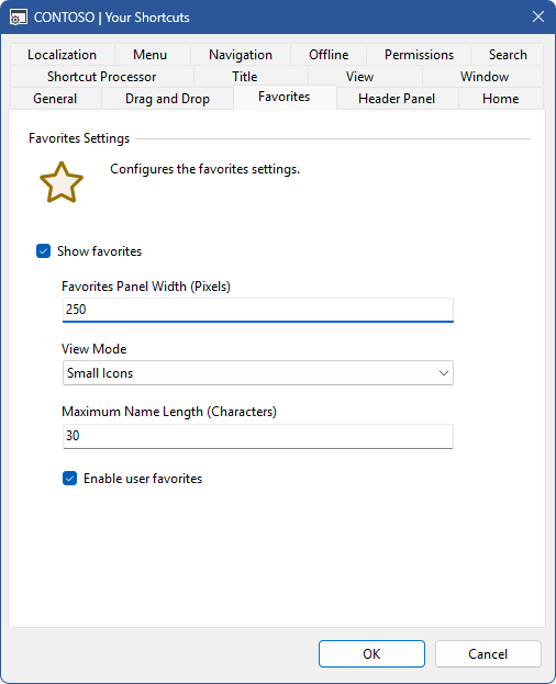 The maximum length of the shortcut name that is displayed in the favorites user interface before the name is truncated.