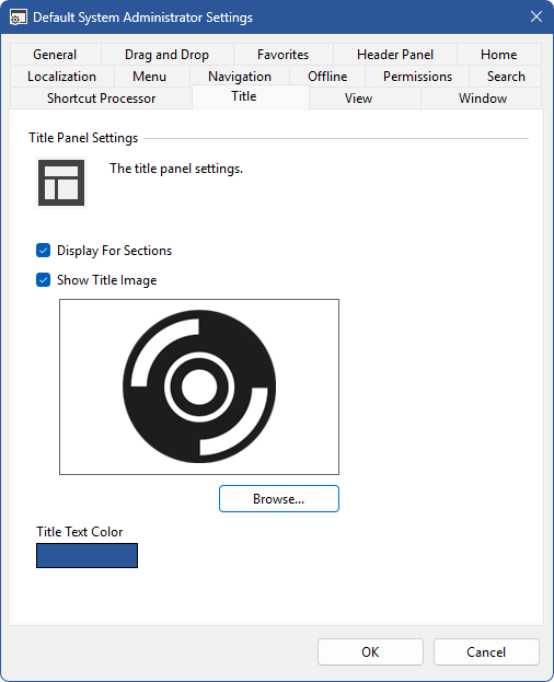 Determines whether the title panel should be displayed when viewing sections. When unchecked the title panel is still displayed for the home page if enabled.