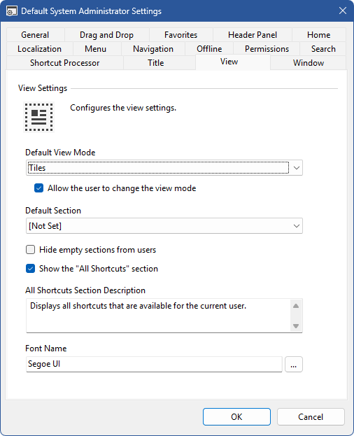 The view setting allows system administrators to assign view related configuration settings to the XIA Links Client.