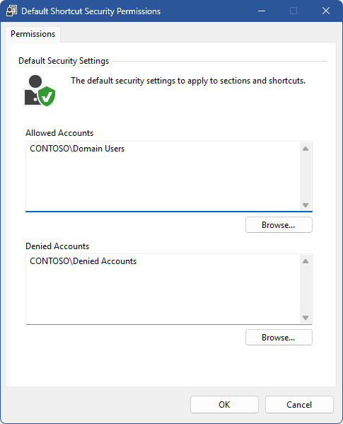 The default shortcut permissions are the permissions that are applied to sections and shortcuts that do not have permissions applied themselves, nor inherit them from a parent section.