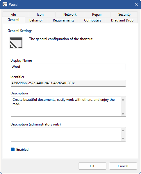 XIA Links ClientShortcuts File or Application Shortcut The file or application shortcut provides the ability for users to access a file or application.