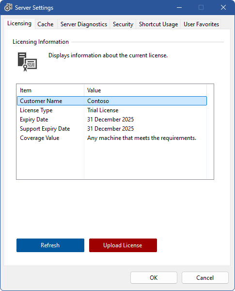 The licensing tab displays information about the licensing of the XIA Links Server.
