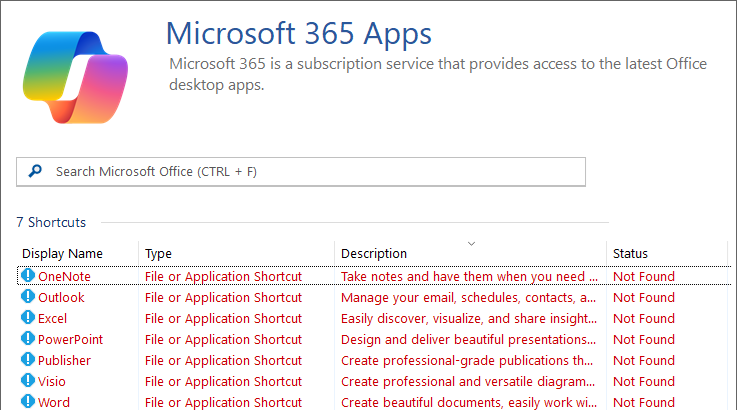 The shortcut is not enabled. This status will only be displayed to system administrators as shortcuts that are not enabled are not displayed to users.