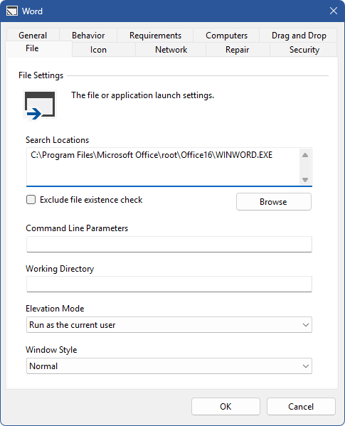 Determines whether the shortcut processor should attempt to determine if the file exists. Enabling this option may reduce the load time of the XIA Links Client, however prevents the use of multiple search locations, and may lead to shortcuts being displayed that are not available to the user. When enabled a system managed icon must be selected.