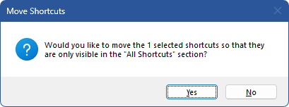 System administrators can drag and drop shortcuts between sections or to the root section.