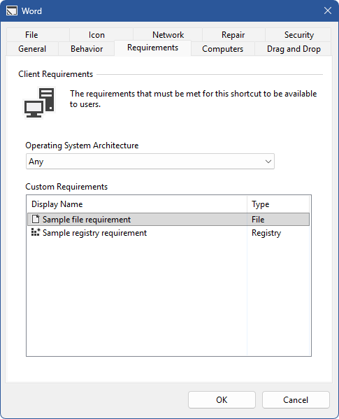Determines the required operating system architecture, which can be Any, x86, or x64.