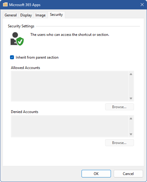 Determines whether the security should be inherited from the parent section, or if the section does not have a parent section the default shortcut permissions.