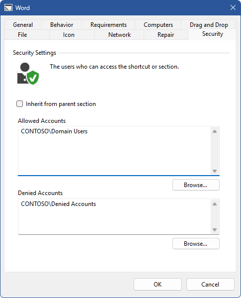 The user or group accounts that are denied permissions to access this shortcut. Deny permissions override allow permissions.